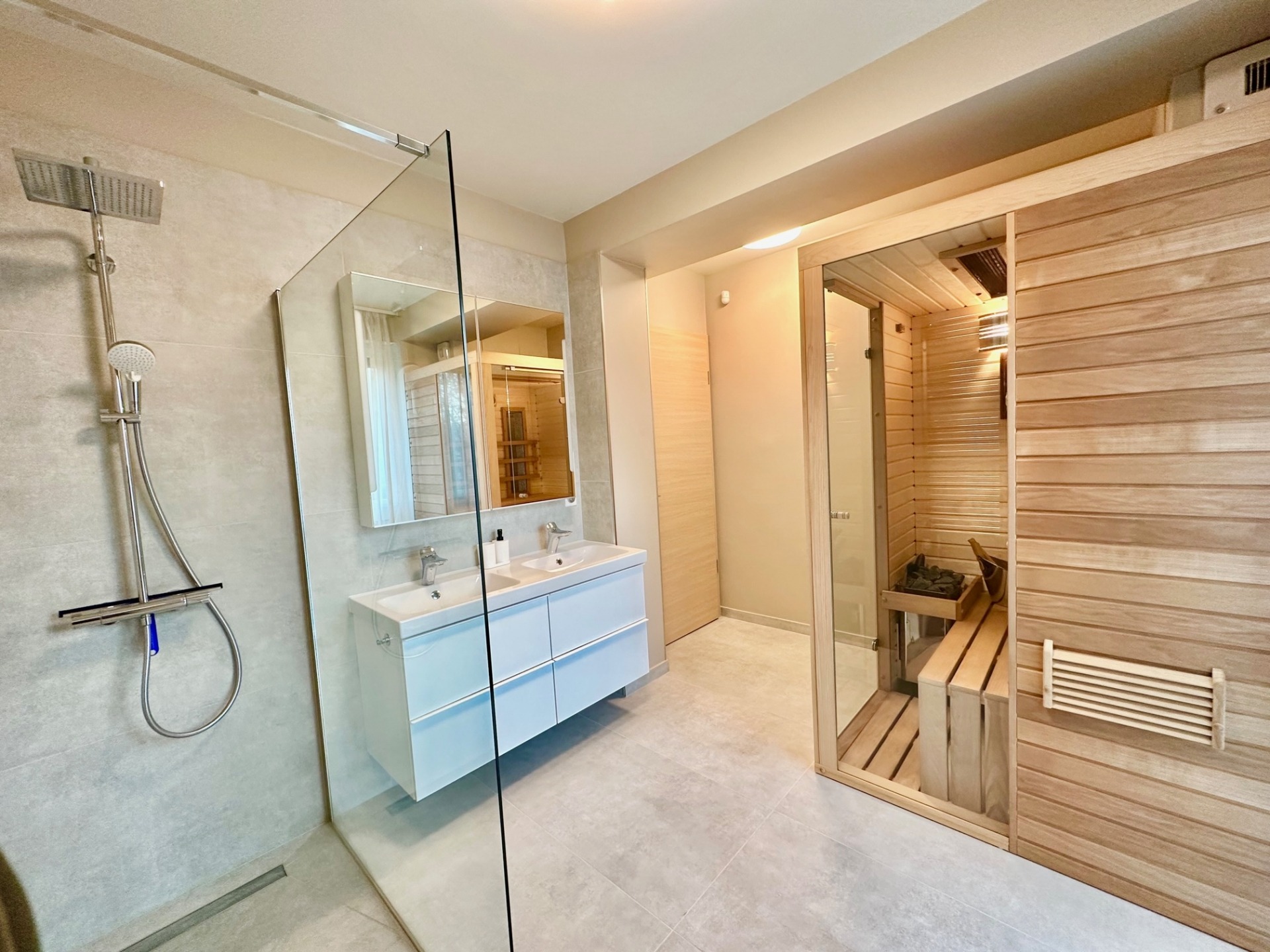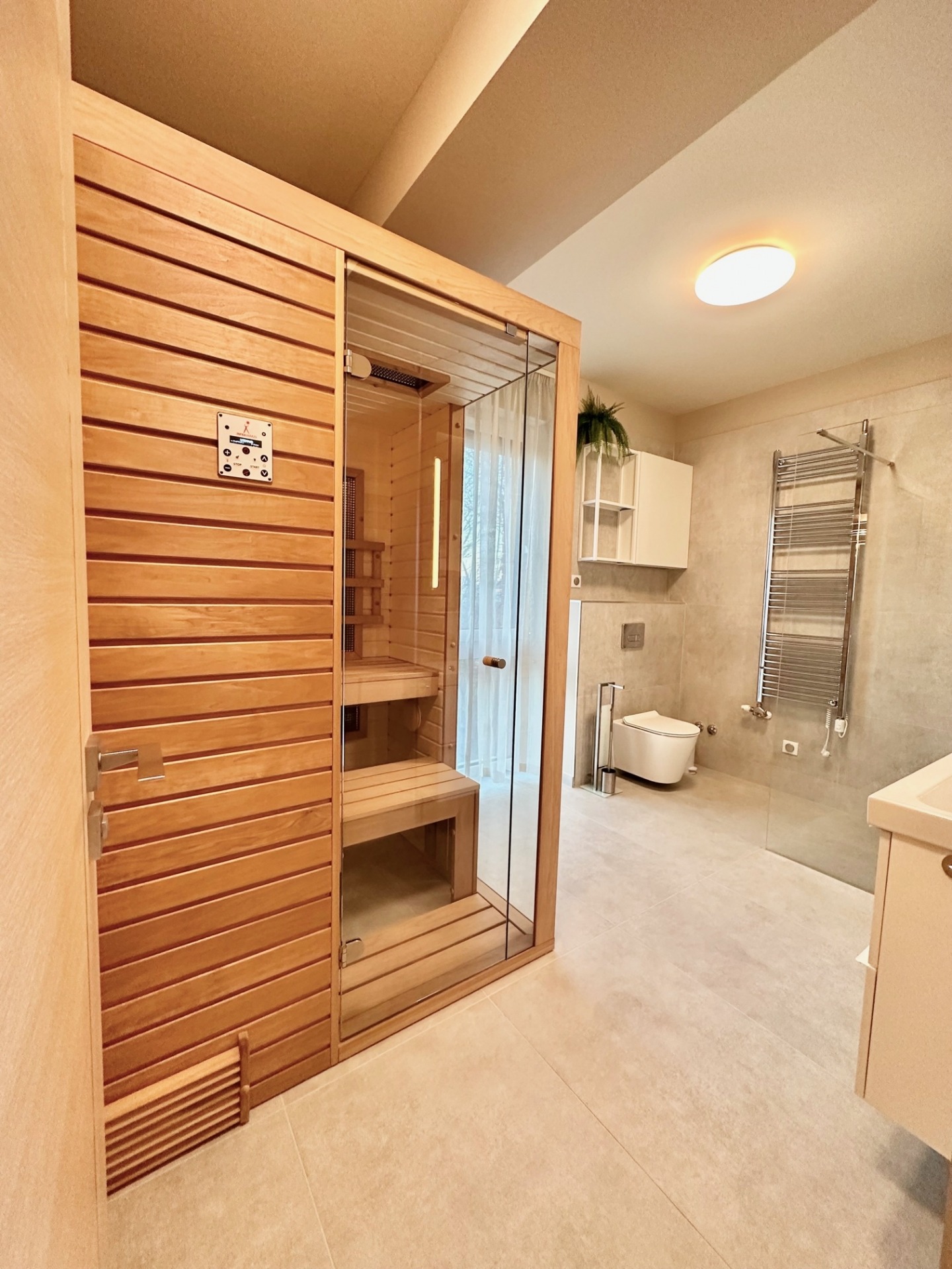 Emeleten: fő háló gardróbbal, szaunás fürdő, második hálószoba dolgozósarokkal
