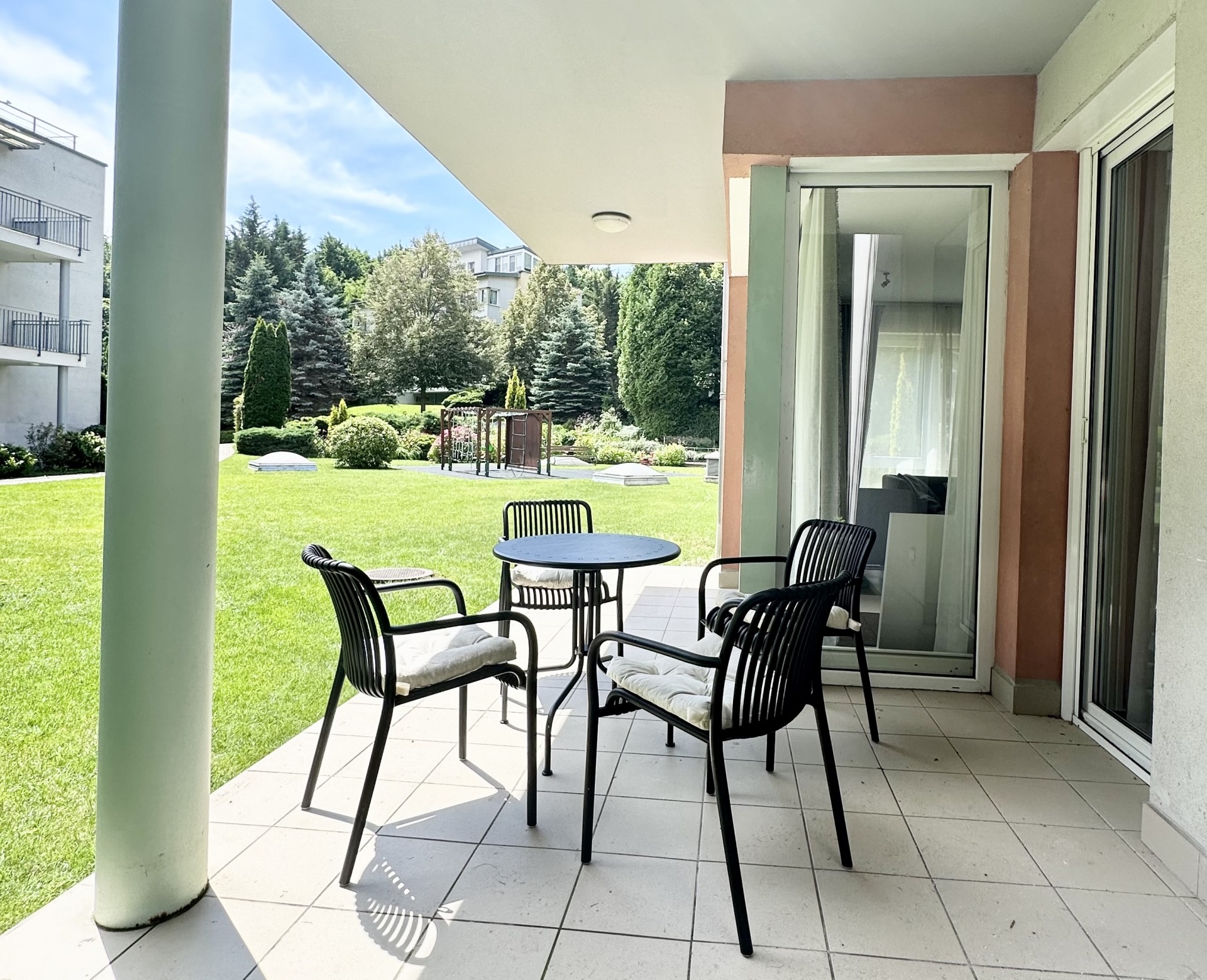 Exkluzív, bútorozott lakás kiadó a Hársliget Lakóparkban – kertkapcsolattal és két terasszal