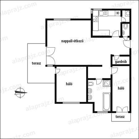 Két terasz összesen 13 m²-en, egyik közvetlen kertkapcsolattal