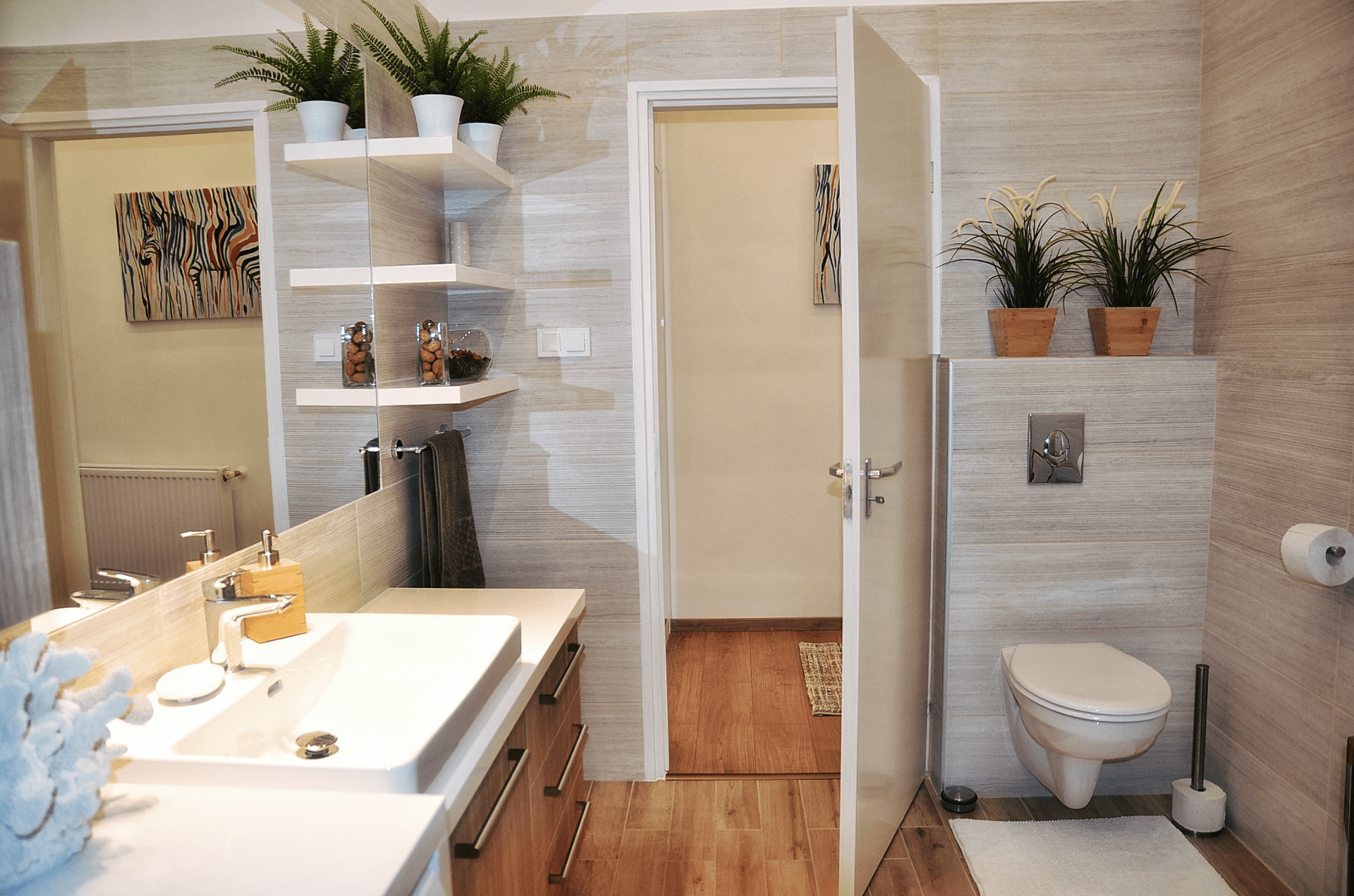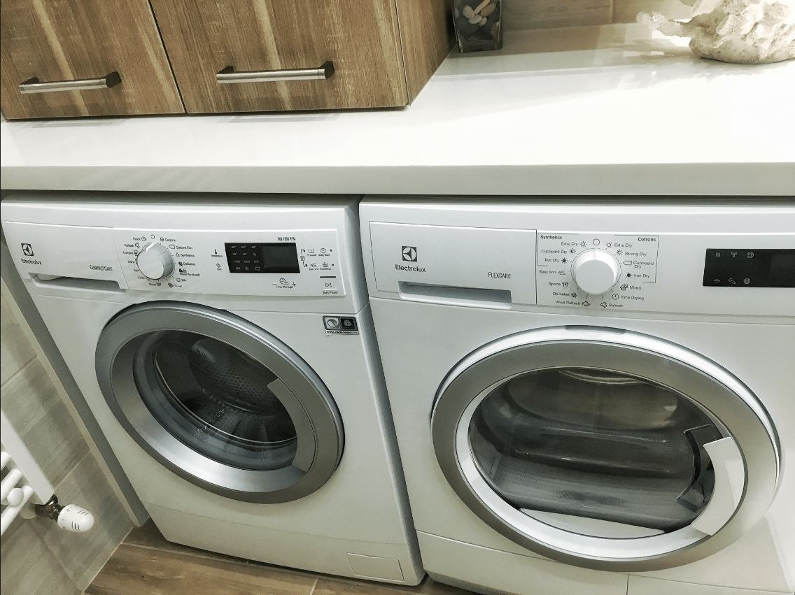 Fürdőszoba szárítóval, mosogatógéppel