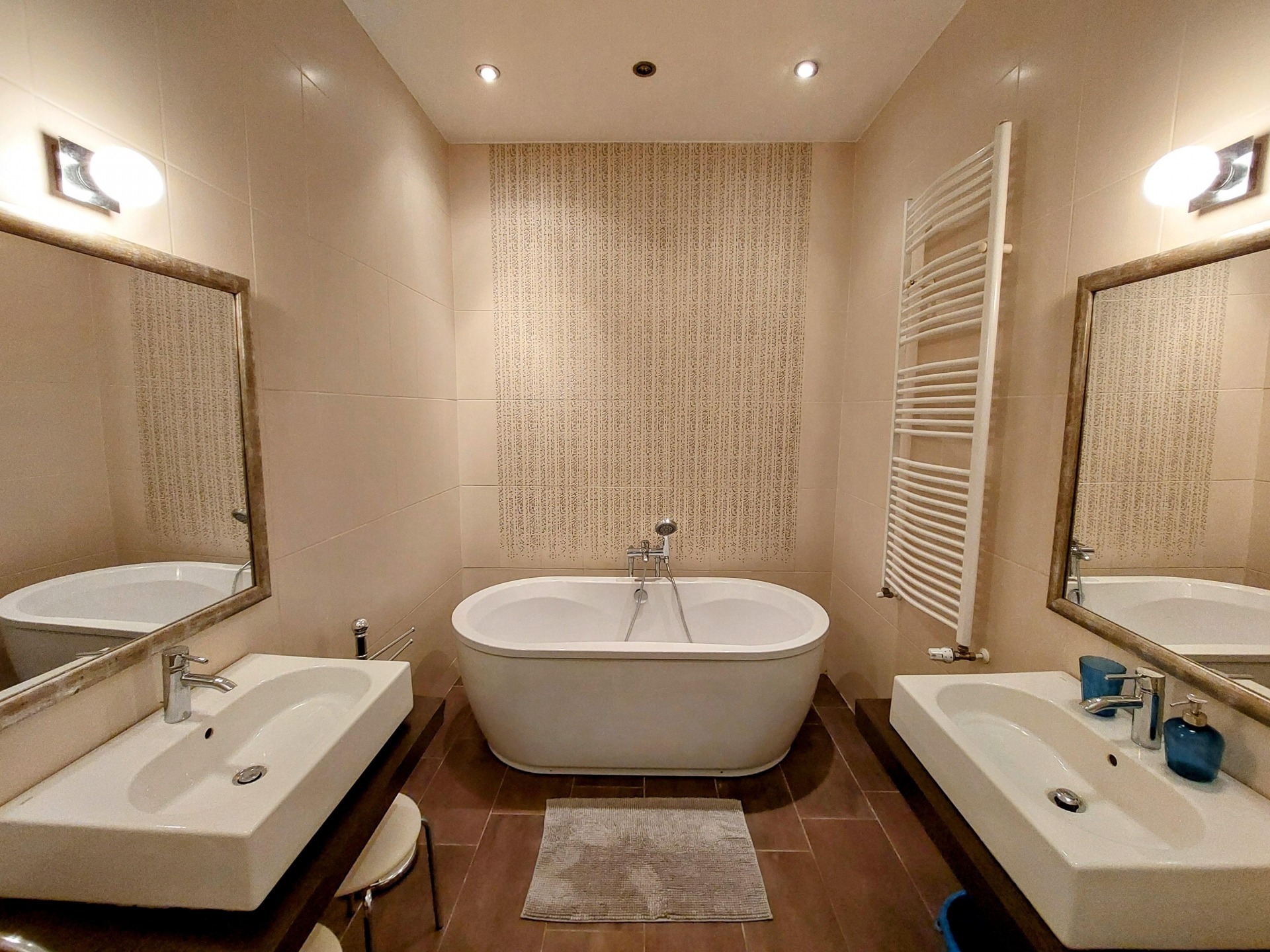 A lakás azonnal költözhető, ideális nagyobb családnak, munkatársaknak, vagy hosszabb távra kereső bérlőknek. A környék kiváló infrastruktúrával rendelkezik: éttermek, kávézók, üzletek, nevezetességek néhány perc sétára találhatók.