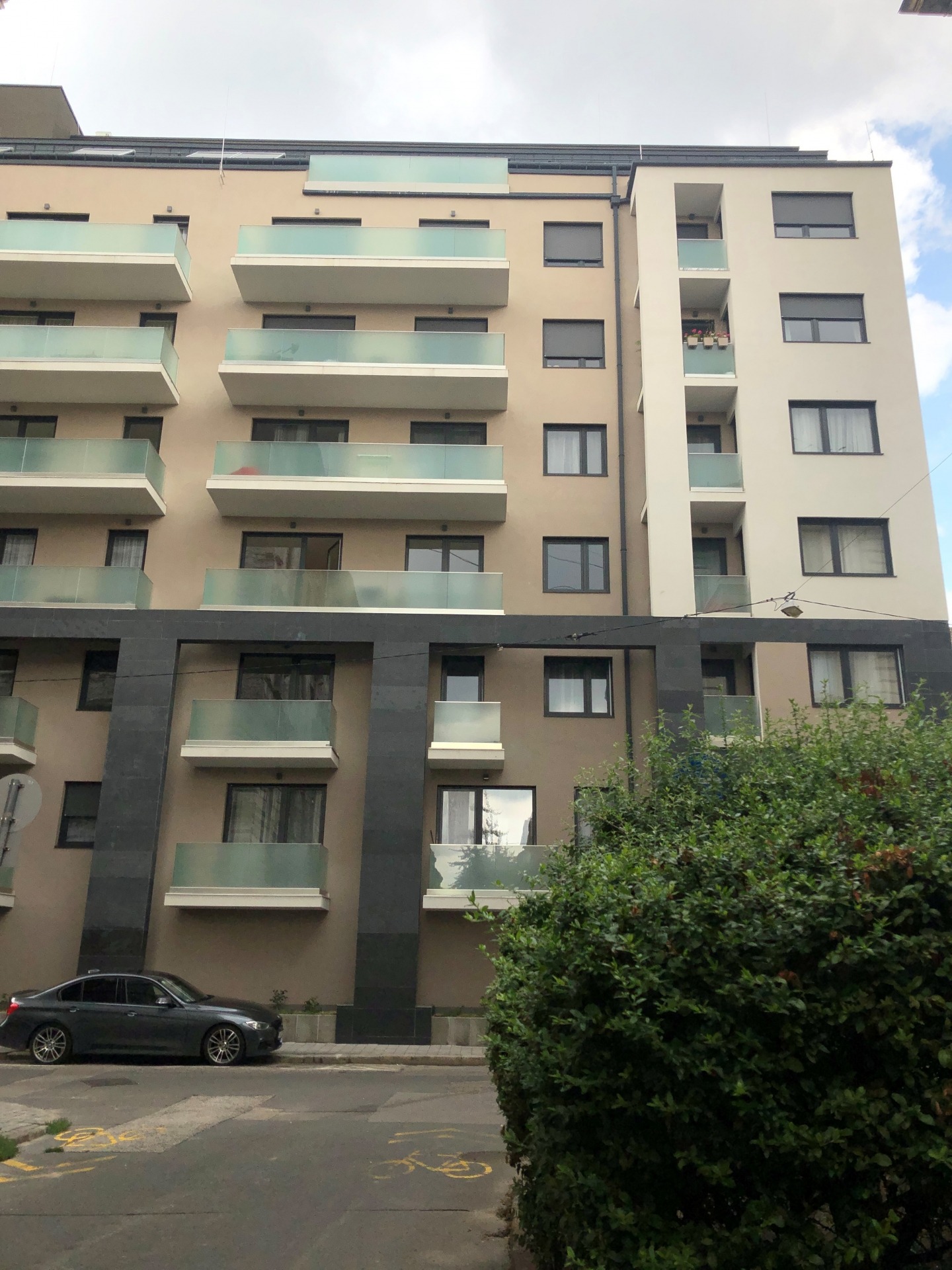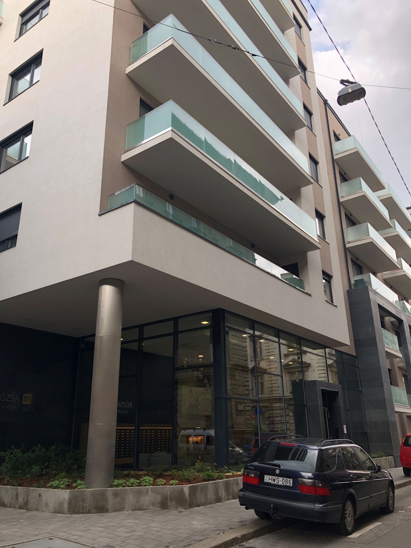 Az épület -1. szintjén kényelmes parkolóhely bérelhető havi 55.000 Ft-ért (kb. 140 EUR/hó).