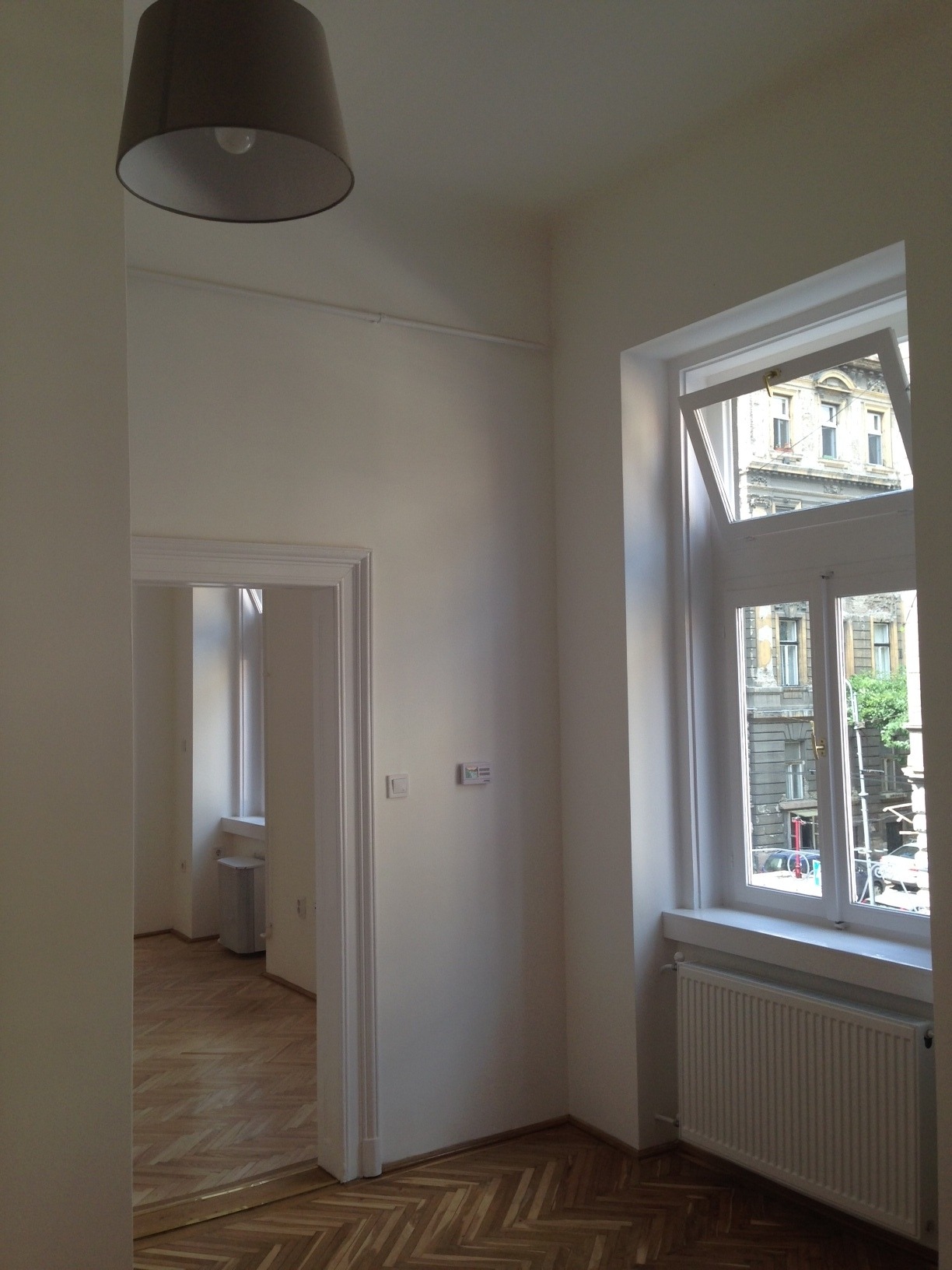 The layout is practical, with rooms opening from one another, and can be easily modified to suit individual needs. The windows face Rózsák Square, providing a pleasant and quiet environment.