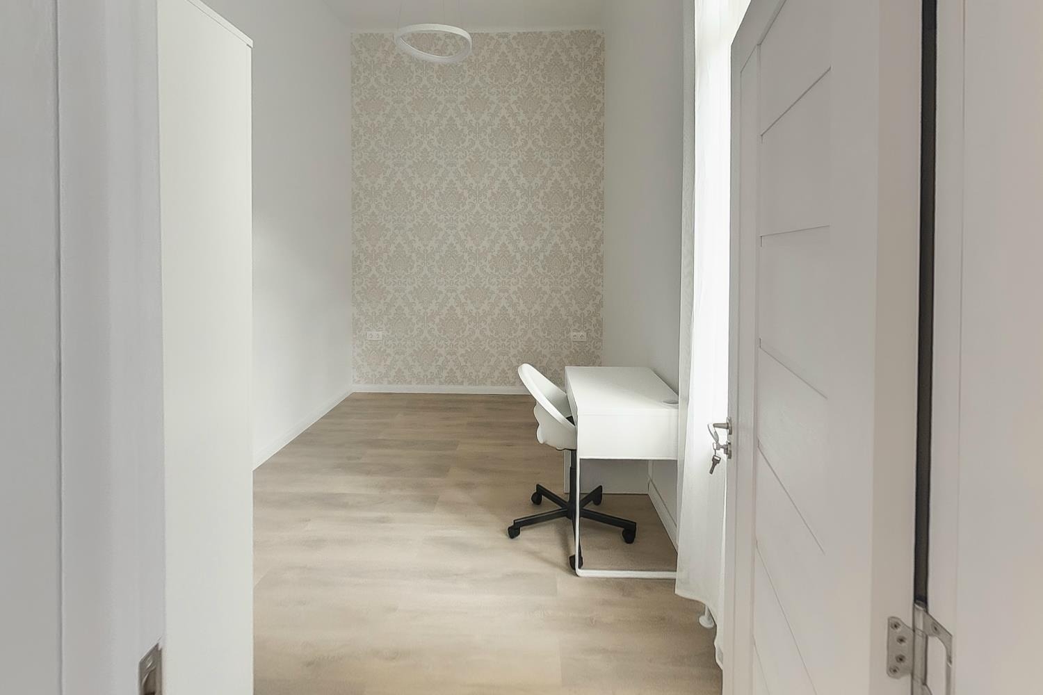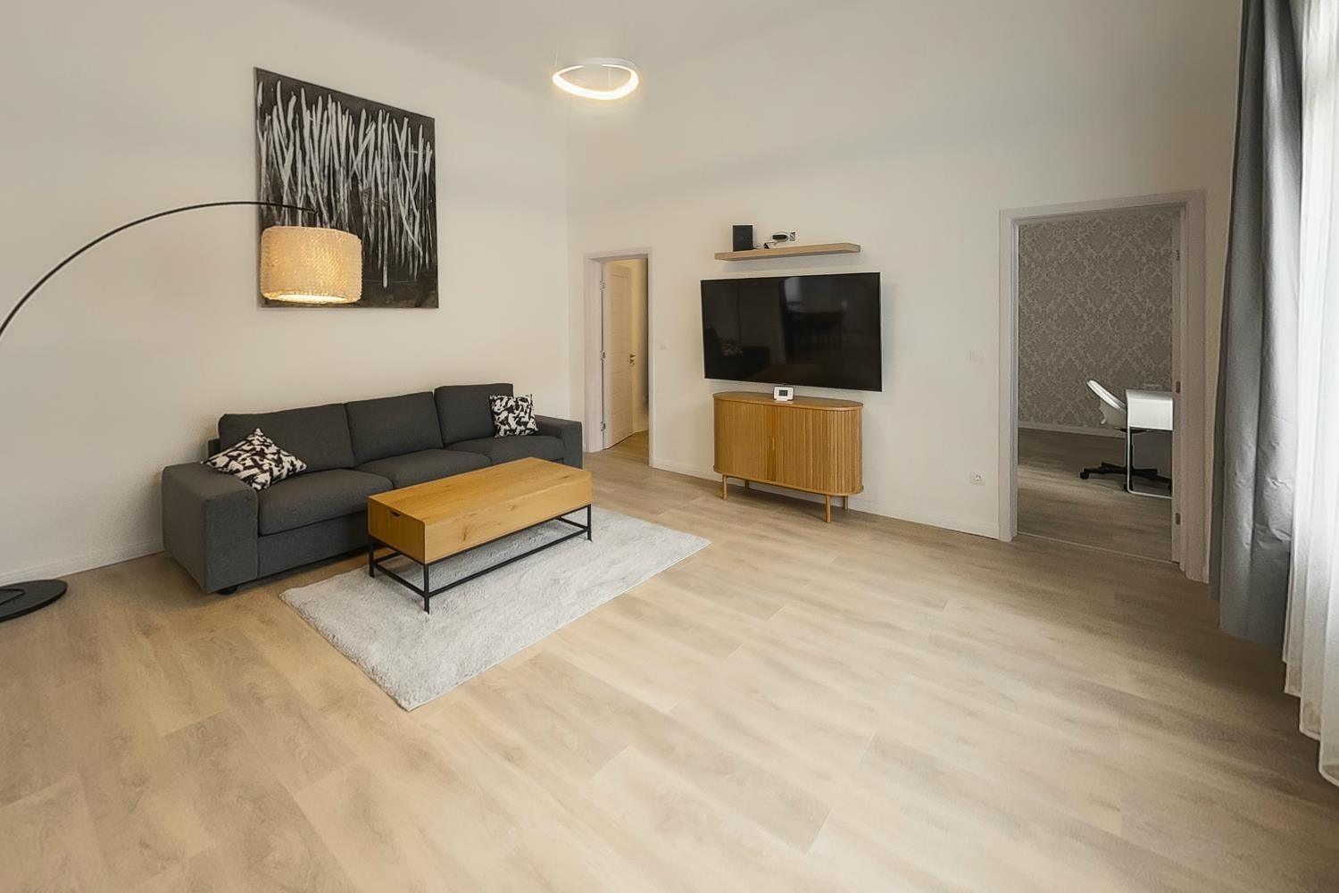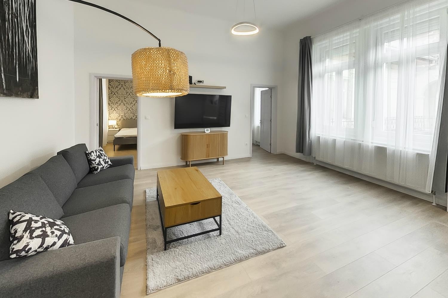 Az 62 m²-es lakásban egy nappali, két különnyíló hálószoba, valamint egy külön dolgozószoba található. A konyha gépesített, az ingatlan bútorozatlanul kerül kiadásra.
