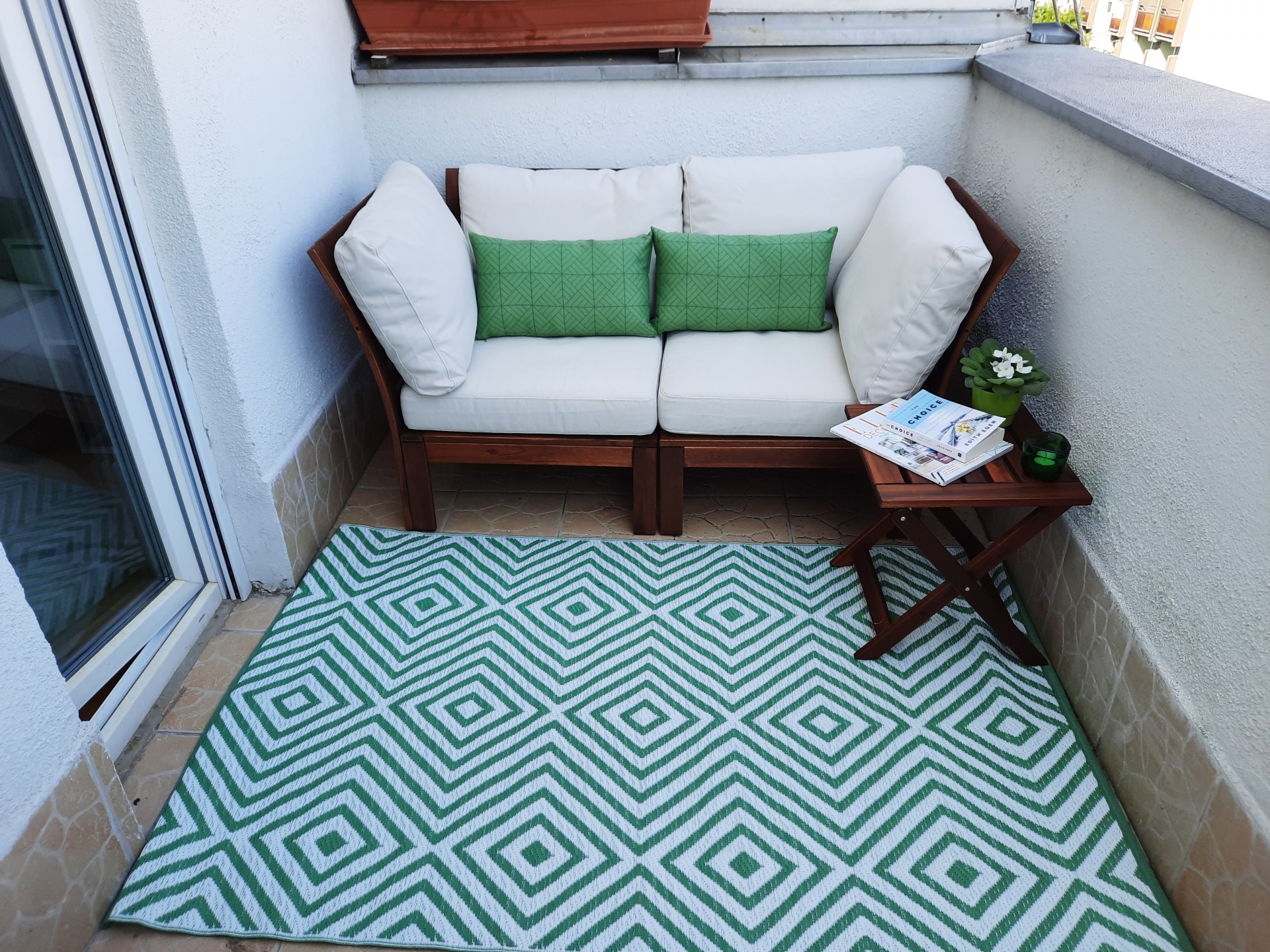 A másik, 1 m²-es erkély a belső kertre néz.
