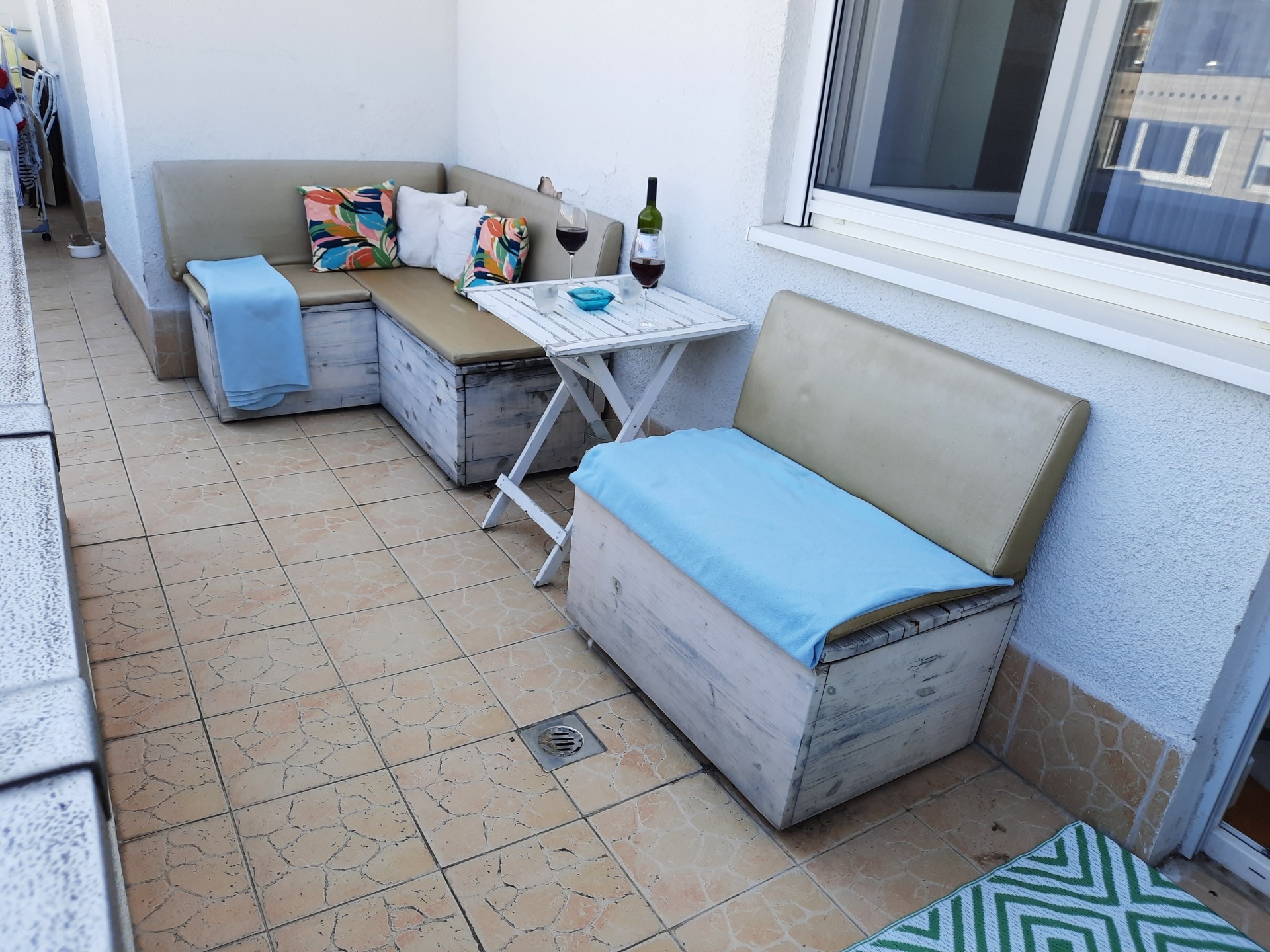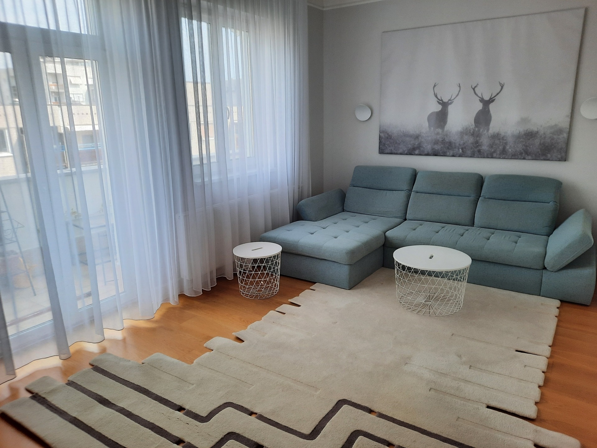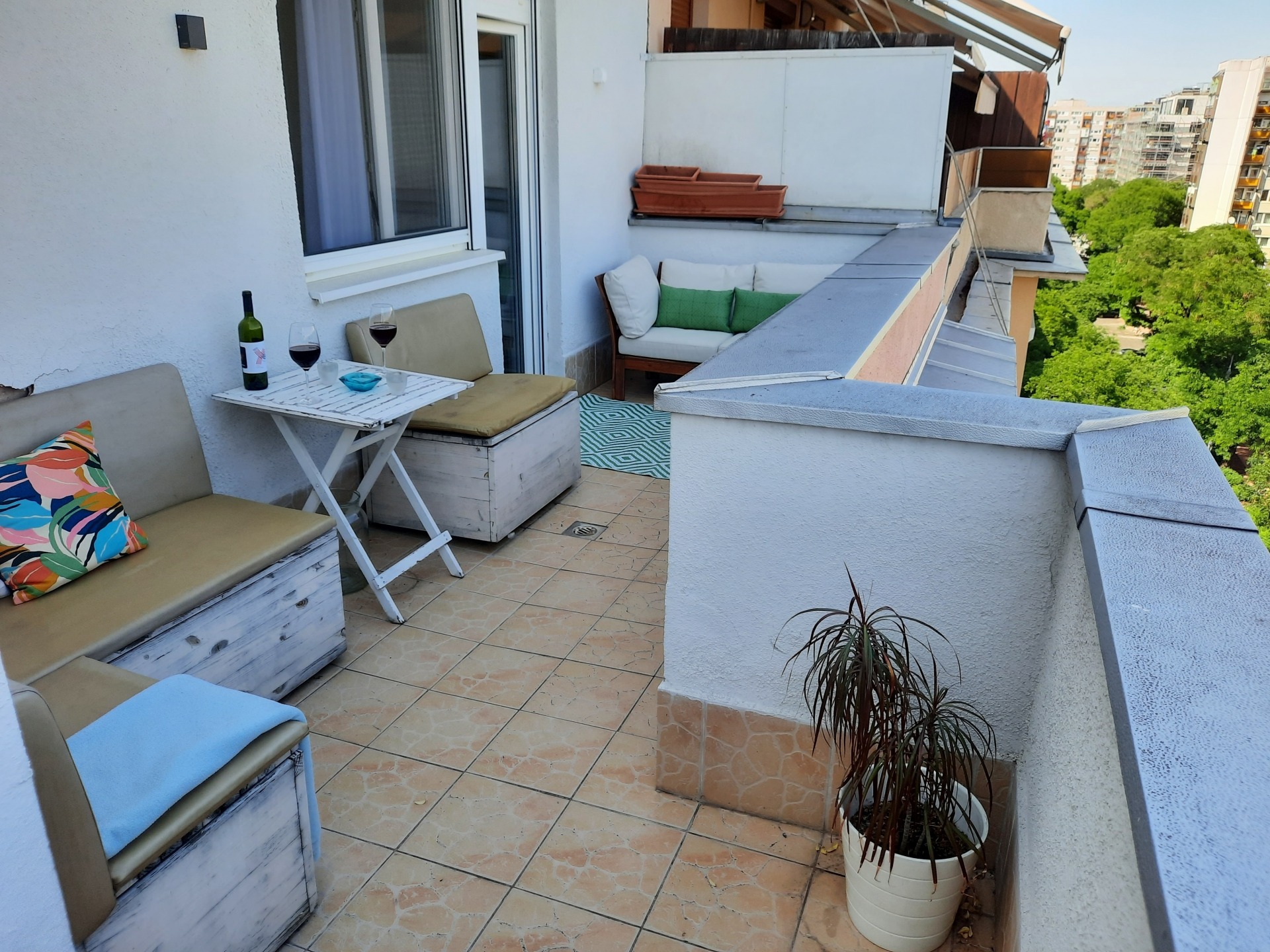 Nappali, melyből közvetlen kijárat van a nagy erkélyre