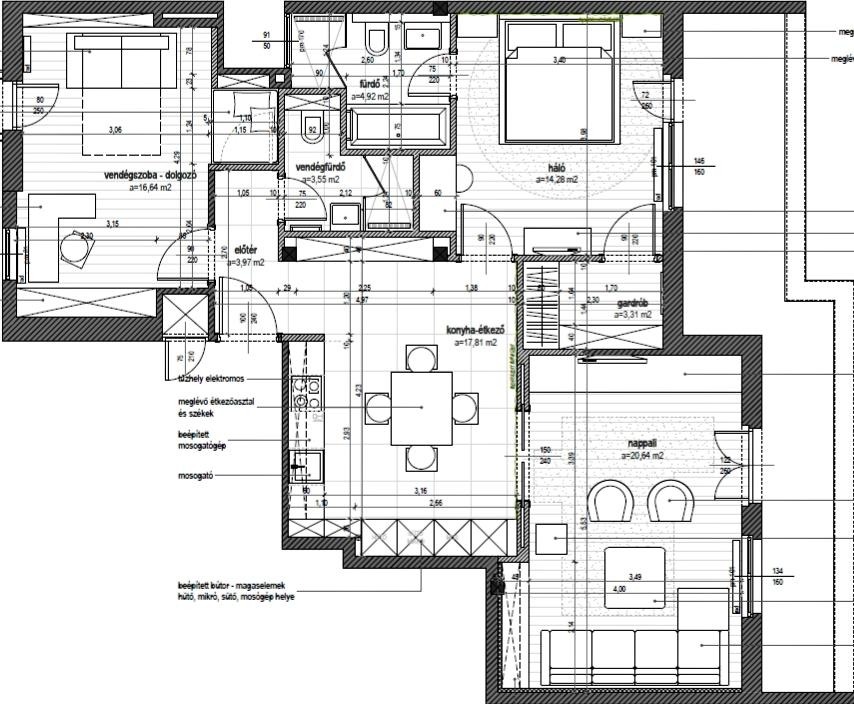 Két hálószoba (a fő hálóhoz gardrób és saját fürdőszoba kapcsolódik)