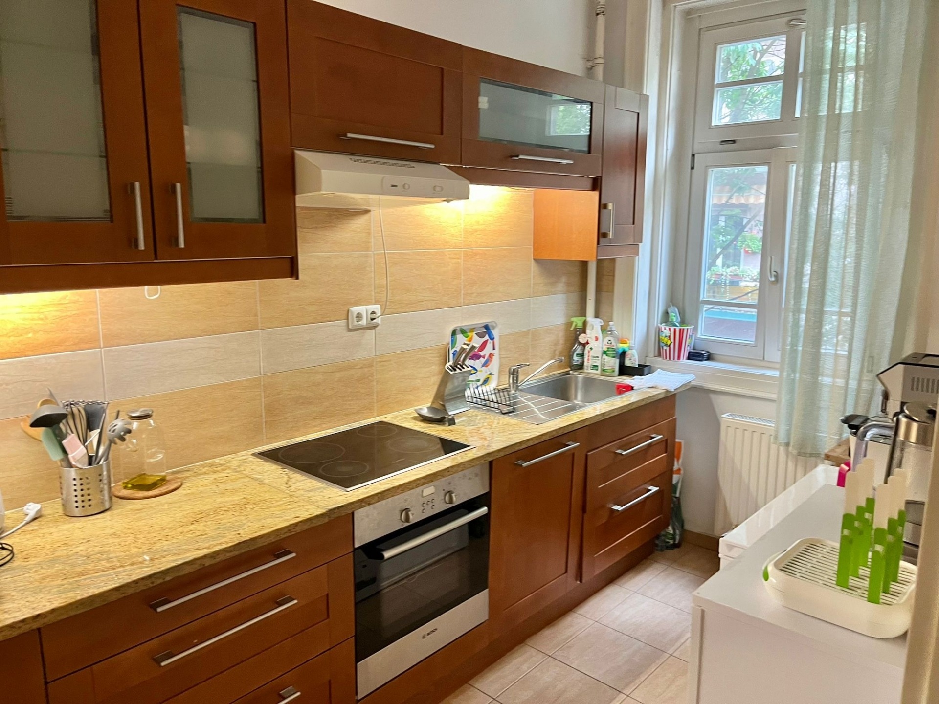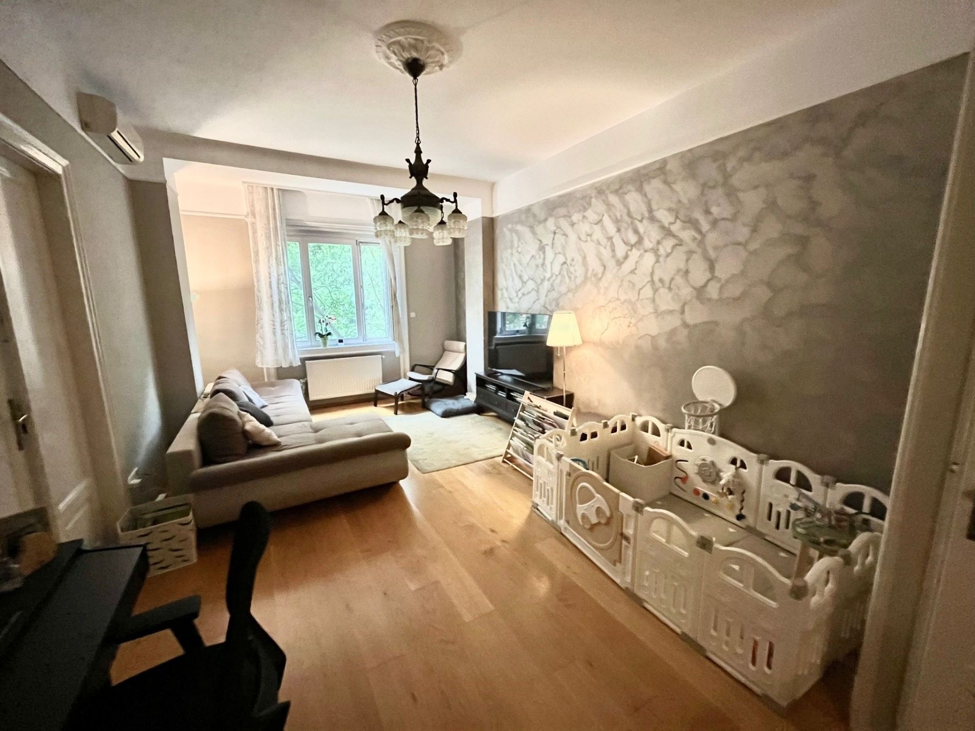 A renovated, 84 m², 2-room + hall apartment with a balcony and air conditioning is available for rent in the 13th district, on Pozsonyi Street. The apartment is located on the 1st floor of a five-story building with an elevator. Heating is central (building-operated).